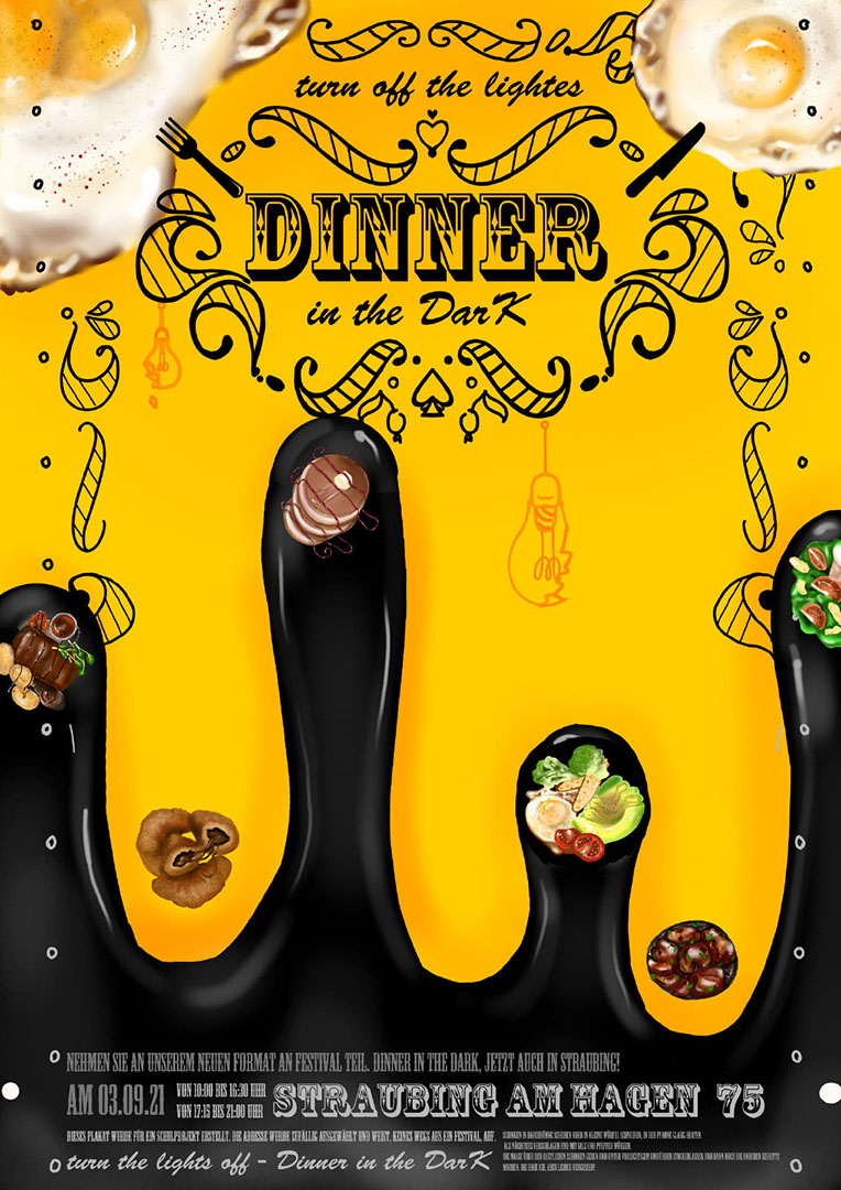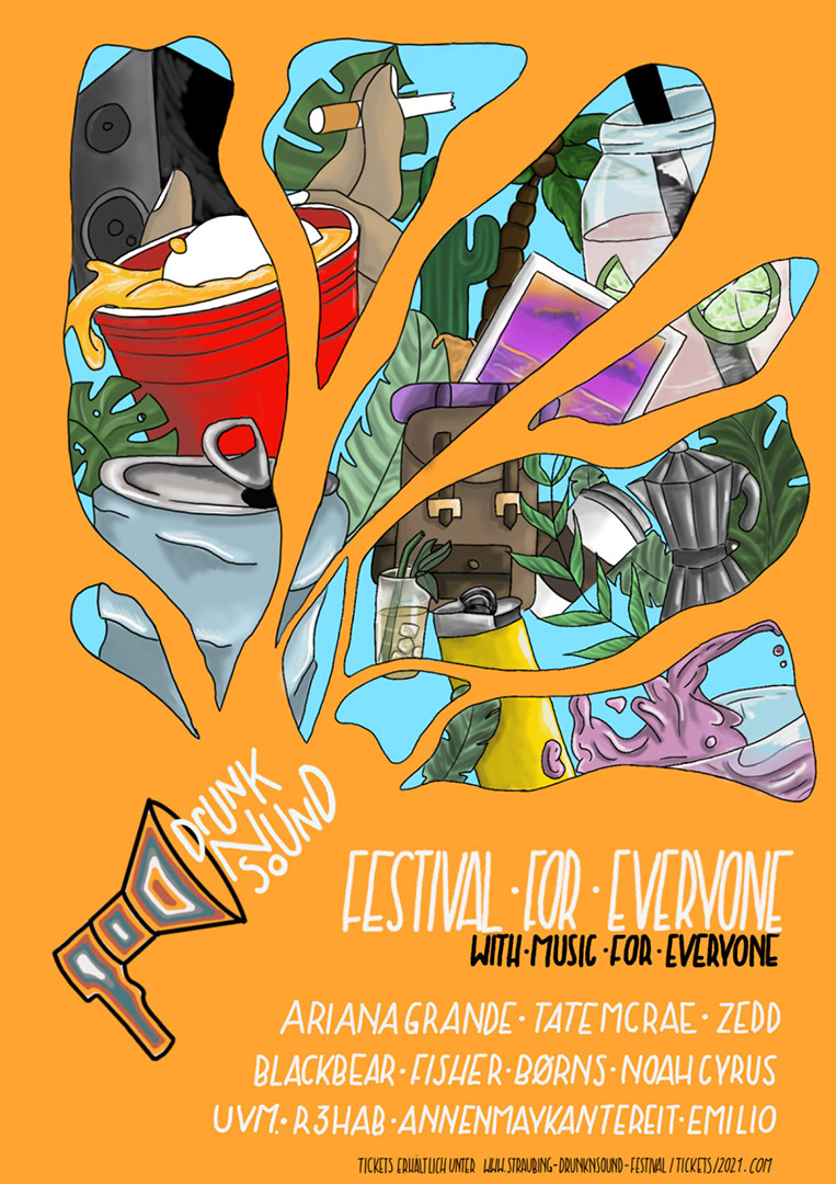 Schüler*innen entwerfen Plakate für imaginäre Veranstaltungen in Straubing und Umgebung.